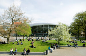 Universität Hamburg, Campus (mit Studierenden), Von-Melle-Park 4, Blick auf Audimax